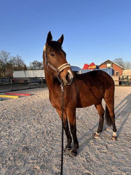 Zum Verkauf steht die 8-jährige Vollblutstute Giodonna (genannt Donna) mit einem Stockmaß von ca. 1,62 m. Donna ist 2021 aus dem Galoppsport ausgeschieden, da sie unter zu hohem Druck schnell Stress aufbaut. Sie ist eine zuckersüße, sensible und sehr aufmerksame Stute, die gerne arbeitet und gefallen möchte. Vollbluttypisch bringt sie Temperament und Ausdruck mit, benötigt jedoch eine klare, ruhige Führung und ist daher kein Anfängerpferd. Aktuell wird sie freizeitmäßig im Westernstil geritten und ist an die Arbeit mit dem Bosal gewöhnt. Besonders positiv hervorzuheben ist ihr Verhalten bei der Bodenarbeit, beim Longieren sowie im Horsemanship – hier zeigt sie sich brav, motiviert und sehr kooperativ. Donna lebt derzeit im Offenstall in einer gemischten Herde und ist dort gut integriert. Gesucht wird ein erfahrener Pferdemensch, idealerweise mit Vollbluterfahrung, der ihr Zeit, Verständnis und Sicherheit geben kann. Platz vor Preis. Weitere Informationen gern auf Anfrage.