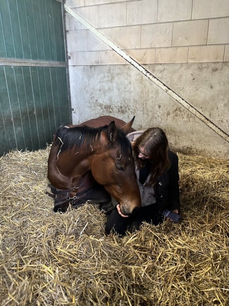 met pijn n mn hart moet ik helaas ivy verkopen in verband met privé omstandigheden ivy is een hele lieve merrie van 8 jaar, ze komt oorspronkelijk uit ierland en heeft dus ook nog een iers paspoort. ze heeft een schofthoogte van ongeveer 1,67cm je kan alles doen met dr en ze vind alles prima!! op de grond s ze heel rustig maar wilt ze wel graag duidelijkheid maar laat ze wel zien dat ze heel leergierig is. tijdens het rijden is ze aardig in de omgang maar kan ze soms wel eens een bokje geven of niet luisteren, ze heeft dus een ruiter nodig die sterk in zn schoenen staat. ivy is nog nooit op wedstrijd geweest maar is prima met dressuur en springen doet ze ook heel goed ookal heeft ze soms moeite met afstand of dr zelfvertrouwen, maar ze gaat er wel altijd over heen (1m is het hoogste) spullen kunnen in overleg over gekocht worden - 300 grams winter deken - 200 grams winter deken - zadel - hoofdstel - borsttuig