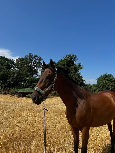 Schweren Herzens müssen wir uns von unserem 18-jährigen irischen Vollblut Historic Occasion, liebevoll Henry genannt, trennen. Aus zeitlichen Gründen können wir ihm nicht mehr gerecht werden und wünschen uns daher für ihn ein liebevolles, verantwortungsbewusstes Zuhause, im besten Fall nicht allzu weit entfernt wo wir die Möglichkeit haben ihn besuchen zu kommen. Henry ist ca. 1,60 m groß und ein Kopper, was ihn im Alltag jedoch nicht belastet. Er ist ein sehr freundliches und angenehmes Pferd, besonders kinderfreundlich und menschenbezogen. Aktuell ist er nur bedingt reitbar, da er körperlich wieder aufgebaut werden müsste. Mit Geduld und einem passenden Trainingsplan kann er jedoch wieder ans Reiten herangeführt werden . Er wird für leichte Reiter ein treuer Begleiter sein. Wir suchen für Henry Menschen, die ihm mit Ruhe, Zuneigung und Fürsorge begegnen und ihm ein schönes neues Zuhause bieten. (Platz vor Preis) Wir geben ihn nur mit Schutzvertrag in beste Hände ab! Zubehör wie Sattel,Trense usw auf Anfrage Bei Interesse oder Fragen freuen wir uns über eine Nachricht!