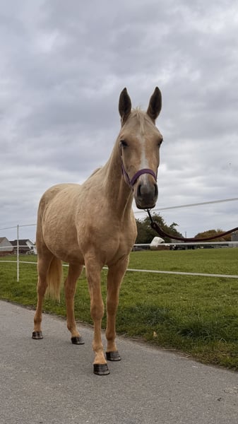 For sale: Two-year-old Palomino gelding of the Quarab breed – Poco I am offering a beautiful two-year-old Palomino gelding named Poco, of the Quarab breed. The horse holds an AICQA certificate, confirming his excellent lineage and good health. Poco is regularly vaccinated, dewormed, and saddle-trained, ensuring his well-being and good condition. Raised in a free-range herd, he does not kick or bite. He has recently begun work with a saddle, making him an ideal candidate for further training. He is very social and enjoys being around people. I am happy to provide additional information via phone or message for interested parties.