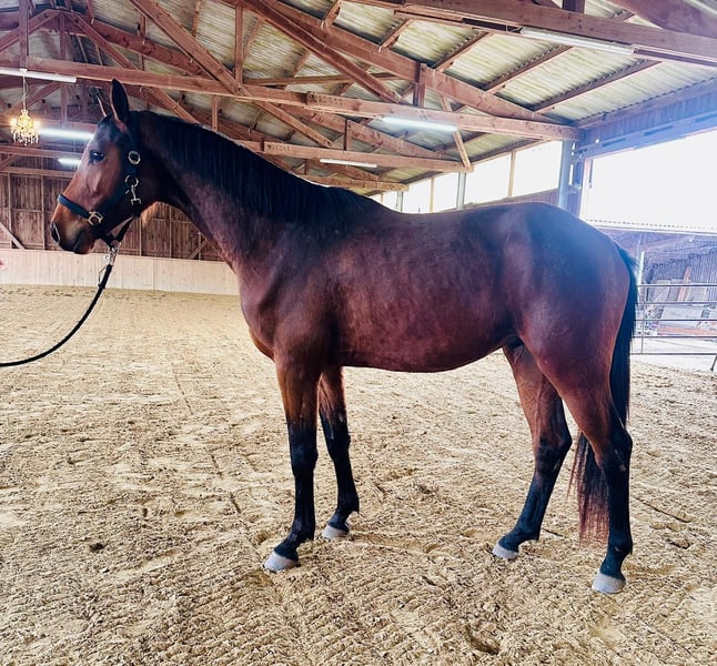 3-jähriger brauner Wallach von Zinedream x Comme Il Faut. Braver sportlicher Typ, roh.