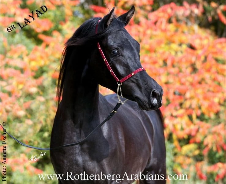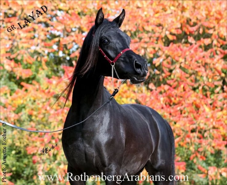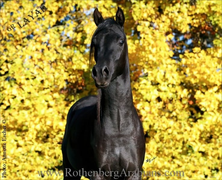 Reinerbiger rein ägyptischer Vollblutaraber-Rapphengst GR LAYAD (Rappe ohne Abzeichen) vom goldprämierten Rapphengst GR Ishad aus einer Tochter des berühmten GR Faleeh (Rappe, Schausieger, exportiert nach Kuwait) Mutterlinie Abayyan! Fantastischer exotischer Typ, Größe, super Gebäude & Bewegungen, wundervoller Charakter, bewährtes Spitzenpedigree sowie üppiges Langhaar zeichnen ihn aus! Erste Fohlen 2026! Insgesamt stehen Ihnen insgesamt 15 rein ägyptische Hengste zur Verfügung - teils bei uns im Gestüt, teils auswärts auf Deckstation bzw. über Frischsamenversand und zum Teil auch mittels Gefriersamen - die meisten Rappen, etliche davon reinerbig, etliche Goldprämiert ! Weltbekannte Spitzenhengste teils gold-prämiert / Körungssieger, teils mit großen Schauerfolgen sowie erfolgreicher Nachzucht in der ganzen Welt! Rappen & Schimmel! Alle Hengste sind SCID & CA frei, Decktaxen ab Euro 700,- (je nach Hengst und Rasse / Abstammung der Stute) - genaue Deckbedingungen auf Anfrage. Außerdem haben wir sowohl aus unserer eigenen, weltweit erfolgreichen Zucht sowie von Deckkunden immer wieder Fohlen, Jung- und auch Zuchtpferde anzubieten - mehr Infos teilweise auf unserer Homepage www.Gestuet-Rothenberg.de bzw. alle aktuellen Verkaufspferde gerne auf Nachfrage. Nähere Infos gerne telefonisch unter 0049 / 0 90 91 / 37 07 oder per e-mail (bitte Anfragen per e-mail NUR mit vollständigem Namen und Adresse - danke!). Besuchen Sie uns auch auf Instagram: @RothenbergArabianStud