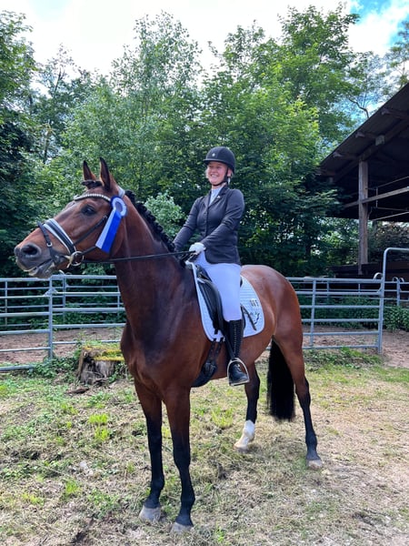 Dieser 9 Jähriger Wallach steht zum Verkauf, liebevoll Norbert genannt sucht er seinen neuen Herzensmensch. Er ist ungefähr 1,75m groß- sehr sehr brav und grundsätzlich sehr nett zu reiten. Jedoch braucht er schon einen Reiter der nicht ganz am Anfang seiner reiterlichen Karriere steht. Ich denke man sollte auf einem sicheren A Niveau reiten oder auch höher. Oder mit Ausbindern läuft er auch absolut brav - dann sollte aber jemand da sein der ihn ca.2 mal die Woche auch durcharbeitet. Er ist absolut nicht guckig , frech oder ängstlich. Man kann mit ihm tolle Ausritte genießen, nette Dressurstunden reiten oder auch Springen. Dies hat er aber länger nicht mehr gemacht. Als junges Pferd war er Spr. Pf. A platziert und hat Dr. Pf. A gewonnen. Mit seiner jetzigen Besitzerin und auch mit der Reitbeteiligung ist er mehrfach A Dr. Platziert. Er ist hübsch, dem Menschen sehr zugewandt und offen für neue Abenteuer. Er ist sicher L ausgebildet. Tolles Allrounder Pferd. Die Eierlegendewollmilchsau. Gerne Nachricht an mich bei Interesse . Dann versende ich ein Video.
