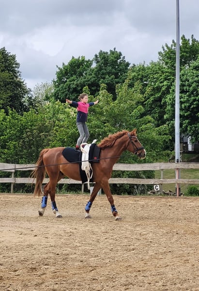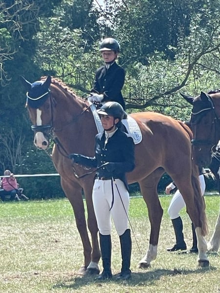 Wir verkaufen im Auftrag einen 11jährigen großrahmigen Fuchswallach welcher für alle Sparten offen ist. Daktari ist platziert in Dressurprüfungen der Kl.A, springt zuverlässig auch mit weniger erfahrenen Reitern einen Parcours ( Kl.A) und Geländesprünge, wurde dort aber nicht auf Turnieren vorgestellt. Sowohl im Voltigieren als auch in WBO Prüfungen konnte er sich bereits mit Kindern platzieren. Mit seiner Größe von ca 1,79m ist er vielleicht nicht unbedingt ausschließlich für Kinder geeignet. Natürlich ist er schmiedefromm, verladesicher (Anhänger/Lkw), sehr sozial im Herdenverband und gesund. Eine ca. 2 Jahre alte AKU ist vorhanden.