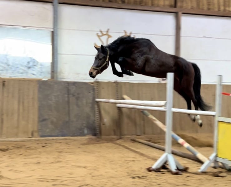 Zum Verkauf steht ein großrahmiger Wallach von Million Dollar, der seiner Abstammung entsprechend mit sehr guter, raumgreifender Galoppade und guter Manier am Sprung ausgestattet ist. Er hat einen tollen Charakter, ist absolut ehrlich und sowohl unter dem Sattel als auch im Umgang artig und unkompliziert. Er wurde 5 jährig angeritten, ist wegen Zeitmangel allerdings noch nicht weit ausgebildet. Mit entsprechender Ausbildung entwickelt er sich sicherlich zu einem vielversprechenden Springpferd oder Freizeitpartner. Aufgrund seines aktuellen Ausbildungsstandes ist er jedoch noch nicht für Anfänger geeignet. Aktuelle Röntgenbilder können angefertigt werden. Um Reittourismus zu vermeiden, berechnen wir für das Probereiten 30 €, die beim Kauf verrechnet werden.