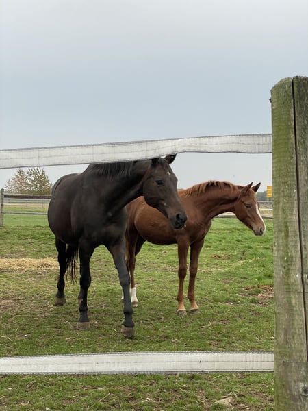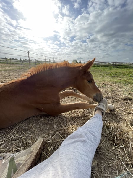 Leider können wir bei uns keine Hengste großziehen, daher suchen wir für unseren Night Agent ein 5* zu Hause ab Ende September. Vater: Next Golden Champion MF (147cm) (Next Diamond x Golden Wesr) Mutter: Sandro Hit x Brentano 2 (170cm) Ist jetzt schon sehr groß, wird auf jeden Fall über 160cm. Aktuelles Stockmaß 140cm. Eingetragen als Deutsches Kleines Reitpferd. Volles Papier, körfähig im Rheinland. Mutter ist Leistungsstute und war selber bis zur schweren Klasse erfolgreich. Vater hoch erfolgreich in Reitpferdeprüfugen mit Noten zwischen 8-9,0! Charakter 10,0, ein Fohlen zum Verlieben für Sport oder als gehobener Freizeitpartner. Absolut Platz vor Preis! Er verdient es ein 5* zu Hause zu bekommen, da er einfach alles richtig macht:) Kann sofort ausziehen, geboren Mitte April