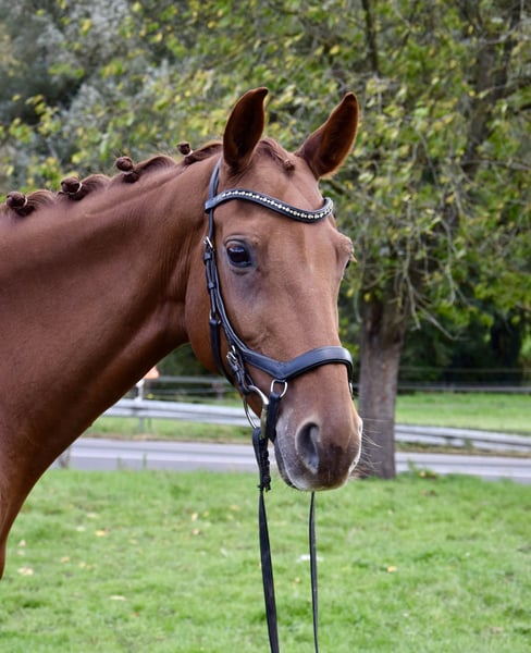 Ballerina ist eine 2015 geborene Rheinländer-Fuchsstute von Burma Gold xx x Der Dürer x Natiello xx. Durch ihre freundliche und ehrliche Art besticht Ballerina den Menschen. Sie liebt Aufmerksamkeit und Beschäftigung: egal ob Putzen, Bodenarbeit, Spazieren/Joggen gehen- sie macht alles gerne mit. Ballerina ist mit wenig Aufwand und fein zu reiten, braucht deswegen aber auch einen still sitzenden und gefühlvollen Reiter. Wenn das gegeben ist, bereitet sie ihrem Reiter viel Freude und möchte immer alles richtig machen. Es macht einfach Spaß mit ihr zu arbeiten. Unarten wie Bocken oder Steigen sind ihr fremd. Zur Abwechslung geht Ballerina regelmäßig alleine oder in Begleitung ausreiten und macht Cavalettiarbeit und Springgymnastik. Die Rheinländerstute ist es gewohnt, den Tag in einer Gruppe auf dem Paddock oder der Weide zu verbringen. Sie kommt direkt vom Züchter, ist geimpft, entwurmt und wird regelmäßig dem Hufschmied vorgestellt. Weitere Infos auf Anfrage, Standort 42579.