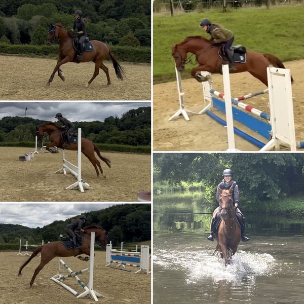 Ballerina is a 2015-born Rheinländer (German Riding Horse) mare with a striking chestnut coat, sired by Burma Gold xx out of Der Dürer x Natiello xx. Her friendly and honest nature endears her to people. She loves attention and engagement, whether it’s grooming, groundwork, or going for walks/jogs—she enjoys all of it. Ballerina is easy and sensitive to ride, requiring a calm, attentive, and experienced rider. When paired with such a rider, she provides her best and always strives to do her best. Working with her is simply a pleasure. She is free of vices like bucking or rearing. For variety, Ballerina is regularly ridden alone or in company, and she also does cavaletti work and show jumping gymnastics. The Rheinländer mare is accustomed to spending her days in a group on the paddock or pasture. She comes directly from the breeder, is vaccinated, dewormed, and regularly seen by the farrier. Further information available upon request. Location: 42579.