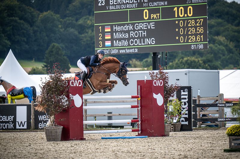 Wir geben unsere 12 jährige Stute von Balou du Rouet x Clinton II / Forrester ab. Bernadette macht alles möglich was geht und verzeiht Reiterfehler wo es möglich ist. Sie wurde erfolgreich auf dem Bundeschampionat vorgestellt, ist mehrfach national S-platziert und M-siegreich. International ist sie bis 135 platziert und mit 14-jähriger Reiterin bis S-gegangen und international bis 130 hoch platziert. Sie hatte 4-jährig ein Stut-Fohlen, welches inzwischen ebenfalls bis 140 vorgestellt wird und ist daher auch für die spätere Zucht sehr interessant. Im Umgang ist sie völlig unkompliziert, fährt alleine Hänger/LKW, hat keinerlei Probleme mit Übernachtungsturnieren oder ähnlichem. Bei Fragen gerne melden - Pferd steht im Rheinland. Preis der Qualität entsprechend.