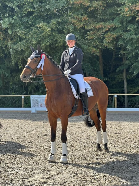 Zum Verkauf steht diese 2013 geborene Stute. Sie besticht mit ihrem durchaus klaren Kopf, super bequemen Grundgangarten und einer hervorragenden Rittigkeit. Sie ist trotz ihrer Größe von ca. 1,80m super fein zu reiten und reagiert feinfühlig auf alle Hilfen, daher eignet sie sich auch für kleinere bzw. schwächere Reiter. Im Umgang ist sie eher der gemütliche Vertreter und beim Reiten mit einem angenehmen Go, da sie hier gerne und eifrig mitarbeitet. Zudem geht sie super gerne ins Gelände, hier zeigt sie sich auch immer händelbar und unerschrocken. Im Frühjahr 2024 hatte sie eine Verletzung diese wurde komplett ausgeheilt und danach schonend antrainiert. Seitdem ist sie wieder auf Ihrem ganz normalen belastbaren Trainingsstand. Selbstverständlich wurde sie regelmäßig geimpft, entwurmt und dem Schmied vorgestellt. Zudem sind regelmäßige Check-up bei der Physiotherapeutin sowie Zahnarzt vorgenommen. Weitere Informationen sowie Bilder und Video auf Anfrage.