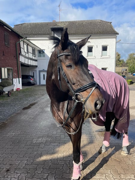 Püppi ist eine bildschöne dunkelbraune Rheinländerstute von Riccione, geboren im Mai 2012 und somit 14 Jahre alt. Sie hat ein Stockmaß von 1,64m und verfügt über drei sehr gute Grundgangarten. Püppi ist seit fast 6 Jahren in unserem Besitz und wir haben sie mit professioneller Unterstützung bis hin zur Klasse L ausgebildet. Sie ist mehrfach siegreich A* platziert und kann auch mehrere aktuelle A** und L-Platzierungen vorweisen. Unter dem Reiter zeigt sie sich sensibel, aufmerksam und leistungswillig. Sie ist allerdings kein Anfängerpferd und sucht einen neuen ambitionierten Reiter, der ihr Sicherheit gibt und sie weiter fördert. Wir geben sie nur sehr ungerne ab und auch nur wegen Zeitmangel auf Grund von Studium und Arbeit. So werden wir ihr leider momentan nicht mehr gerecht. Es handelt sich also nicht um einen Notverkauf und sie wird nur in beste Hände abgegeben. Aktuelle Röntgenbilder liegen vor, Videos auf Anfrage.