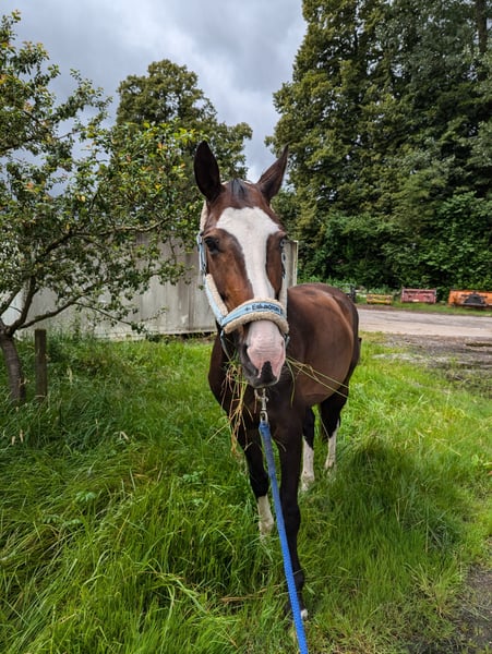 Description: I am offering my top-fit mare, "Poly's Miss Blue," for sale. She underwent a comprehensive health check (AKU) in October 2021. Poly is an energetic, sporty mare who has successfully competed and placed up to class L in show jumping in the past. Current Status: She has not been worked in show jumping over the past four years but remains in excellent physical condition and is still eager to move and jump. She has not forgotten her skills or her technique, and with appropriate training, she can certainly regain her former performance level or provide a dedicated rider with great pleasure as a high-quality leisure horse. Trail & Temperament: Poly is a loyal companion for her person. She is confident in the terrain but requires a firm, trusting handler. She needs someone she can trust 100%, and once that bond is established, she is a lifelong partner who sticks with you through thick and thin. Details: Sport: Successful in show jumping class L (currently on a break). Type: Sporty, energetic, willing to work, focused, always eager to please, and giving her best. Health: In top condition, no known issues. Special traits: Seeks a close bond with a consistent handler. Summary: Poly is not a horse for quick tournament success overnight but a true gem for someone willing to retrain her or looking for a sporty partner for daily work and trail riding.