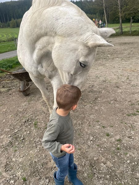 With a heavy heart, I have to decide to part with my Rheinländer grey mare. She is calm, affectionate, and easy to handle in her daily interactions. She will only be sold together with my gelding. A veterinary examination from 2022 is available.