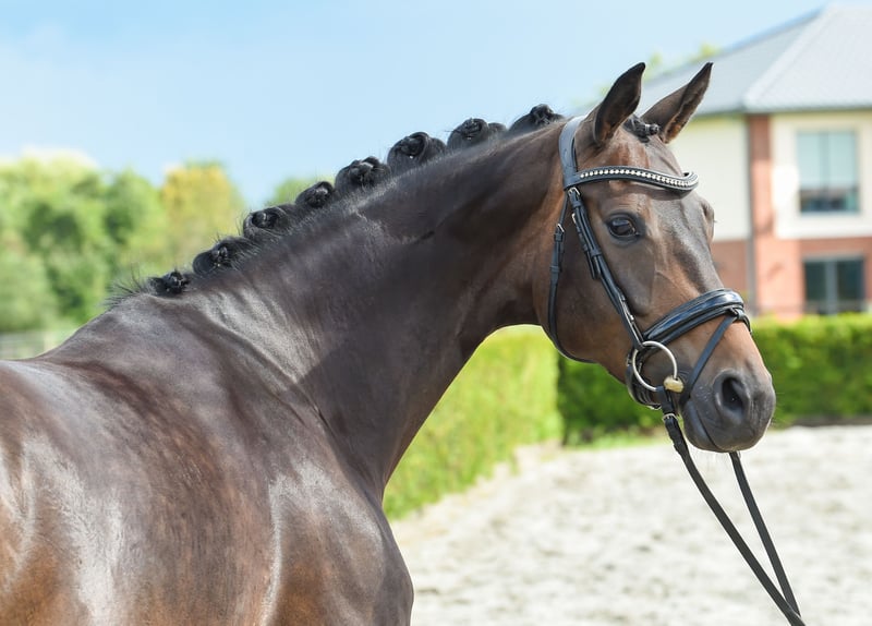"MARIBELLE" *2017 Klacz ciemnobrązowa. 168 cm hanowerski v. Morricone - Sir Donnerhall - Krucjata Lauriesa Piękna klacz z najlepszym wnętrzem: o mocnych nerwach, zrównoważona i zrelaksowana, skoncentrowana i zawsze dla jeźdźca. Maribelle porusza się lekko, zawsze w rytm i kołysząc się po ciele, Jej tylna noga naturalnie pracuje pod środkiem ciężkości, łatwo się na niej siada i zawsze dobrze zabiera ze sobą jeźdźca. Maribelle urodziła już źrebię, jeździ konno od kwietnia 2023 roku i jest własnością hodowcy. Zdjęcie rentgenowskie dobre.