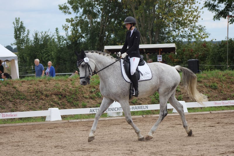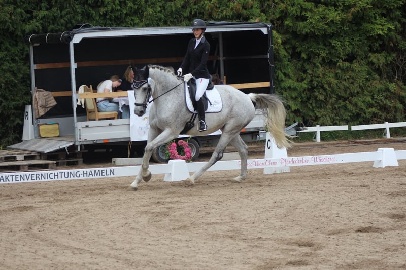 Na sprzedaż jest nasza klacz Caramba. Caramba ma 9 lat i pochodzi od „Come and Fly” x „Raphael”. Szuka nowego domu z 5 gwiazdkami, gdzie będzie traktowana jak księżniczka. Jest niezwykle przyjazna dla ludzi i ma złoty charakter. Caramba jest niezawodna, łagodna i nie ma problemów z weterynarzami, kowalami ani załadunkiem. W ujeżdżeniu wykazuje dużą chęć do nauki i świetne podejście do pracy. Jest sklasyfikowana w A*, A** i L* (bezpośrednio w drugiej L w ujeżdżeniu zdobyła rozetkę). Na terenie może biegać z przodu, w środku oraz z tyłu. Niestety, na początku roku zdiagnozowano u Caramby artrozę i z tego powodu może skakać tylko w ograniczonym zakresie. Caramba to prawdziwy koń rodzinny, który ceni sobie bliskość i uwagę, a także ją wymaga. Życzymy sobie, aby Caramba trafiła do domu, gdzie nie będzie co weekend ciągana na zawody, ale także po prostu będzie jeżdżona na ogłowiu i będzie kochana taka, jaka jest. Kto raz zdobędzie jej serce, szybko przekona się, że zrobi dla niego wszystko. Jest odpowiednia dla początkujących i bardzo ostrożnie obchodzi się z dziećmi. W przypadku zainteresowania prosimy o wysłanie e-maila. Dopóki ogłoszenie jest online, jest również aktualne; prosimy o przesyłanie tylko poważnych zapytań. Brak możliwości ratalnych ani przyjęć w rozliczeniu.