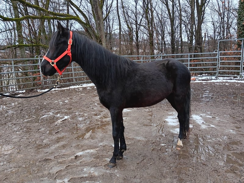 Rocky Mountain Horse x Paso Fino, Wallach, *2023 Schöner, großer Rappwallach mit harmonischem Körperbau und eleganter Ausstrahlung. Er stammt aus einer seltenen und gelungenen Kreuzung mit sehr guter Abstammung: Mutter Rocky Mountain Horse, bekannt für Gelassenheit, sanftes Wesen und Komfort im Sattel, und Vater: Paso Fino, geschätzt für Eleganz, Lernfreude und feine Reaktionsbereitschaft. Er ist freundlich, neugierig, sehr gelassen und ausgeglichen. Charakterlich eher ruhig im Rocky Mountain Horse Typ. In der Bewegung zeigt er sich locker und gut ausbalanciert -elegante, natürliche Gangveranlagung mit viel Taktgefühl. Er kennt Bodenarbeit und longieren- eine solide Grundlage für seine weitere Ausbildung. Ideal für Reiter, die ein vielseitiges Gang- und Freizeitpferd suchen