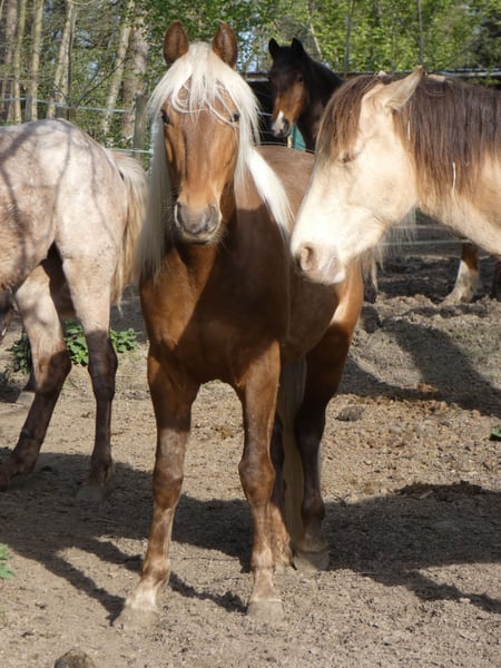 Zertifizierter Rocky Mountain Horse-Geländesekor sucht sein Für-Immer-Zuhause 🌿 RMH Amigos Alto wird in diesem Frühjahr 4 Jahre alt. Er ist eingeritten und unregelmäßig auf kurzen Ausritten unterwegs, um sein Gleichgewicht weiter zu verbessern und zu festigen. 🥾 Am Boden ist Alto anhänglich, sucht den Kontakt zum Menschen und genießt unser Vertrauen. Er ist mutig, und zu Fuß wissen wir, dass wir mit ihm überall hinreiten können. Er hat sein ganzes Leben in einer Herde verbracht, mit Fohlen, Stuten und Wallachen... Er versteht alle sozialen Signale eines Pferdes und ist nicht sehr dominant, obwohl er nicht ganz unten in der Hierarchie steht. 🦄 Er ist derzeit 1,50 m groß (er ist in den letzten 8 Monaten um 1 cm gewachsen) und trägt die Farbe Silberschwarz. Sein weißes, glänzendes Mähnen- und Schweifhaar bleibt ihm erhalten, da er homozygot für Silber ist. Er hatte noch nie gesundheitliche Probleme; seine Ernährung ist getreidefrei, ergänzt durch Mineral- und Vitaminpräparate, Leinöl und gelegentlich natürliche Heilmittel (Probiotika, Immunstärker). Das zeigt sich in der Gesundheit seiner Hufe (sehr robust und funktional) sowie in seinem glänzenden Fell. 🍒 Außerdem ist Alto auch sehr leicht zu reiten. Er wurde am Boden eingeritten, dann geritten und innerhalb eines Monats auf Gaits im Halfter trainiert, mit täglichen Sessions von maximal 20 Minuten. Er ist sofort alleine auf Trails unterwegs, ohne nach seinen Freunden zu rufen. Er geht energisch, aber ohne Hast zurück nach Hause. Er ist barhuf und wird im Halfter oder Sidepull geritten. Er lässt sich kaum erschrecken, und wenn er doch einmal erschrickt, reagieren seine Bewegungen sehr kontrolliert, ohne dass der Reiter eingreifen muss. Er ist es gewohnt, während der Ausritte häufig auf- und absteigen. Dieses Juwel des Rocky Mountain Horse wartet in Belgien auf dich, in unserer kleinen Herde von Stuten! Zögere nicht, ihn kennenzulernen und auszuprobieren 😊
