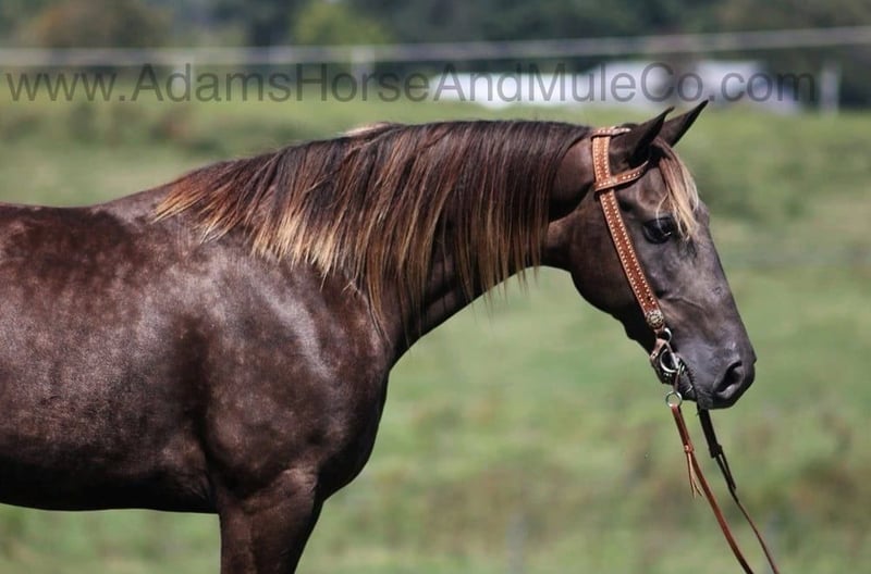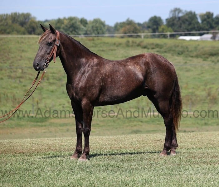 Go to www.AdamsHorseAndMuleCo.com for more pics and a video. AHAMC has been in the horse business and sold horses over the internet since 2005. We have a long track record of success with hundreds of happy customers. We work hard to match riders with the correct horses and specialize in beginner safe, family friendly horses that have been used and checked out by our family! Do you have a sweet tooth??? Maybe a big hunk of chocolate is what you need? Toby is a well built 15.1hh, 7 yr old, Chocolate Flax mane and tail Gelding!!! Tobe has been trail ridden throughout Kentucky, in parts of Tennessee and Virginia. Tobe had been ridden by 3 kids at a time in the lead line classes and shown by the kids in all different types of other classes and always got a ribbon! Tobe has been trail ridden all over our trails by a 6 year old and he is the perfect gaited horse to help build your confidence levels! Tobe is very smooth in all gaits! He will flatfoot walk on a loose rein as long as you like or he can move on out if you asked. No matter where he goes or what he does, Tobe is not spooky acting. On the trails he is always great and is a seasoned pro! Tobe has been exposed to all kinds of wildlife such as deer or turkey or other animals like cows or dogs and will go anywhere that he is asked too. He has been rode many miles in the mountains of Eastern Kentucky and encountered every obstacle possible on the trail. He will go up or down even the steepest slopes, across deep creeks, over downed trees, and over all types of rough terrain while still being sure footed. He has been rode in traffic, and is very traffic safe around cars, semi, log, and dump trucks. He has a great attitude about whatever he is asked to do and is always willing. If you have a craving for chocolate this is the one for you!!! Feel free to call Eric 606-308-2461 with any questions.