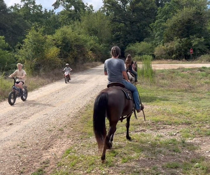 "VERFÜGBAR BEI DER ONLINE-PFERDEAUKTION unter www DOT MagicHorseAuction DOT com DAS BIETEN IST JETZT GEÖFFNET bis DIENSTAG | 15. APRIL - SOFORTKAUF VERFÜGBAR! *Der endgültige Preis wird auf der Auktionsseite festgelegt* KONTAKTINFORMATIONEN DES EINLIEFERERS: Southern Performance Horses 706-963-9251 STANDORT: Carnesville, GA „Übersieht dieses Mädchen nicht, sie ist bereit, die Frühlings- und Sommerpfade zu erkunden!! Nova ist eine super coole Kentucky Mountain Saddle Horse Stute, sie steht bei 14,2 Händen und ist sehr kräftig gebaut. Nova ist eine pflegeleichte Stute mit ausgezeichneten Hufen, sie ist barfuß gesund, lässt sich aber auch hervorragend beschlagen. Das Trailreiten mit Nova ist ein Vergnügen. Sie ist nicht schreckhaft und extrem verkehrs-, motorrad-, fahrrad-, hunde- und chaossicher. Nova kann alleine leben oder mit einer Herde. Zur Fütterungszeit ist Nova extrem schlau und weiß genau, wo ihre Box ist. Sie gehört zu den wenigen, die ohne Anleitung zu ihrer Box gehen. Nova zu baden ist extrem einfach. Es kann an der Hand oder im Waschplatz gemacht werden. Nova kann auch am Anhänger angebunden werden, sie kann im Kreuzverband angebunden werden und wurde ohne Probleme an einer Picketline angebunden. Sie ist eine der absoluten Lieblingsstuten meines Hufschmieds, da sie extrem geduldig ist und ihm niemals Schwierigkeiten macht. Nova geht gerne für einen 30-minütigen Ausritt oder auf einen dreitägigen Campingausritt. Sie meistert jede Art von steilem, gefährlichem Gelände, überquert ohne Probleme Baumstämme und Hindernisse und geht durch jedes Hindernis, das wir ihr vorgesetzt haben, ohne zu zögern. Sie hat viele verschiedene Brücken mit uns überquert, einige, die über Autobahnen führen, einige aus Holz und einige schmale auf Radwegen. Nova kann führen oder folgen. Sie ist stabil und gelassen genug, um mit Quarter Horses zu reiten, wenn gewünscht, ist aber bereit, mit Geh-Pferden ohne Probleme Schritt zu halten. Ich habe auch ein paar Unterrichtsstunden mit ihr gegeben, was wunderbar war, da sie sowohl englisch als auch western geritten wurde. Nova respektiert alle Zäune und bleibt sogar in einem einzelnen Strang, temporärem Nylon-Draht, ohne ihn zu testen. Nova ist auf dem neuesten Stand bei Impfungen, Coggins, Zahnbehandlungen, Entwurmung und Hufpflege. Nova lädt und entlädt ausgezeichnet in unseren Aufsteig-Anhänger und reist sehr ruhig alleine oder mit anderen Pferden. Wenn Sie Fragen zu diesem süßen Mädchen haben, zögern Sie nicht, uns zu kontaktieren, und wir beantworten gerne alle Fragen. Wir sind bereit, bei der Suche nach Versandmöglichkeiten zu helfen, zögern Sie nicht, uns mit Fragen zum Versand zu kontaktieren."