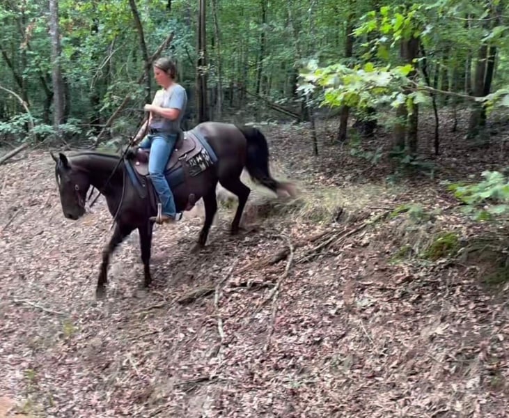 "AVAILABLE ON ONLINE HORSE AUCTION AT www DOT MagicHorseAuction DOT com BIDDING OPEN NOW thru TUESDAY | APRIL 29th - BUY IT NOW AVAILABLE! *Final price will be determined on auction site* CONSIGNOR CONTACT INFO: Southern Performance Horses 706-963-9251 LOCATION: Carnesville, GA "Don’t over look this girl she’s ready to hit the spring and summer trails!! Nova is a super cool Kentucky Mountain saddle horse mare, she stands 14.2 and is very stocky. Nova is an easy keeper and has excellent feet she’s sound barefoot but is excellent to get shoes on also. Trail riding with Nova is a pleasure. She is not spooky and she is extremely traffic, dirtbike, motorcycle, bicycle, dog, and chaos safe. Nova can live alone or out with a herd. Feeding time, Nova is extremely smart and knows right where her stall is at. She’s one of the few that goes to her stall without direction. Giving Nova baths is extremely easy. It can be done in hand or in the wash rack. Nova also ties to the trailer, cross ties and has been tied to a picket line without pawling or fuss. She is one of my Farriers absolute favorites as she’s extremely patient and absolutely never gives him a hard time. Nova is happy to go out for a 30 minute pleasure ride or on a three day camping trail ride. She will go up and down any type of steep, treacherous terrain, steps over logs and obstacles without complication and will walk through any obstacle we have put in front of her without second-guessing. She has been over lots of different bridges with us some that go over highways, some that are wooden and a few narrow ones on bicycle trails. Nova will lead or follow. She is steady and laid back enough to ride with quarter horses if desired, but is willing to keep up with walking horses without complication. I have also given a few lessons on her, which she was wonderful for she has been ridden English and western in those. Nova respects all fence and will even stay in one strand, temporary nylon wire without testing it. Nova is up-to-date on vaccines, Coggins, dental, deworming, and Farrier care. Nova loads and unloads excellently in our step up trailer and travels very quietly alone or with other horses. If you have any questions about this sweet girl, feel free to reach out to us and we would be glad to answer any questions . We are willing to help find Shipping anywhere feel free to reach out to us with any questions you may have regarding shipping. " "