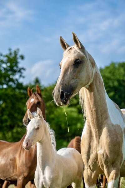 ✨ Introducing "Dance of the Sugar Fairy," a filly that stands out among her peers – a true masterpiece of nature. She is the only Cremello Tobiano foal worldwide within the American Saddlebred breed – a living rarity that captivates instantly with her grace and presence. Her appearance resembles a dance of light and movement: noble, harmonious, full of expression, and with a commanding presence that cannot be overlooked. Even now, she displays the proud carriage and floating lightness that make the American Saddlebred so unmistakable, making her truly special in her own right. ⸻ 💎 Special Features - Unique Color Genetics: the only Cremello Tobiano Saddlebred foal worldwide - Impressive Presence: elegant build, noble head, clear eye - Excellent Pedigree: combining quality, type, and character - Future Potential: ideal for show, breeding, and demanding riding disciplines ⸻ 🌷 Origin & Rearing "Dance of the Sugar Fairy" is raised with great care – with daily attention, top-quality nutrition, and expert guidance. She is already familiar with the basics of foal training, is human-oriented, curious, and consistently displays a natural calmness. ⸻ 🌟 A Promise for the Future This foal is not just a horse – it is a rarity, a statement, and an investment in the extraordinary. "Dance of the Sugar Fairy" embodies what true horse enthusiasts seek: beauty, rarity, and soul. ⸻ 📍 Location: WingWalkerFarm, 58566 Kierspe / NRW 📞 Contact: 0151 21582655 | info@wingwalkerfarm.de