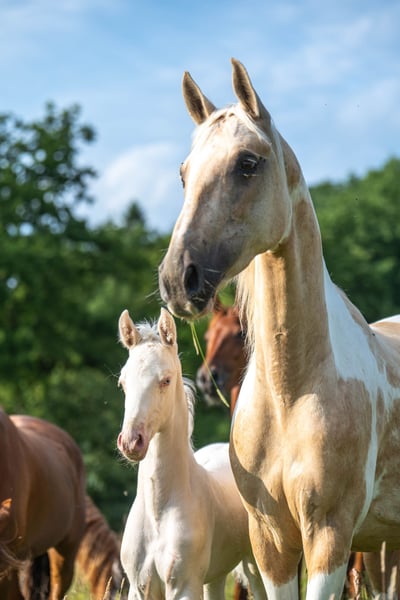 ✨ Introducing "Dance of the Sugar Fairy," a filly that stands out among her peers – a true masterpiece of nature. She is the only Cremello Tobiano foal worldwide within the American Saddlebred breed – a living rarity that captivates instantly with her grace and presence. Her appearance resembles a dance of light and movement: noble, harmonious, full of expression, and with a commanding presence that cannot be overlooked. Even now, she displays the proud carriage and floating lightness that make the American Saddlebred so unmistakable, making her truly special in her own right. ⸻ 💎 Special Features - Unique Color Genetics: the only Cremello Tobiano Saddlebred foal worldwide - Impressive Presence: elegant build, noble head, clear eye - Excellent Pedigree: combining quality, type, and character - Future Potential: ideal for show, breeding, and demanding riding disciplines ⸻ 🌷 Origin & Rearing "Dance of the Sugar Fairy" is raised with great care – with daily attention, top-quality nutrition, and expert guidance. She is already familiar with the basics of foal training, is human-oriented, curious, and consistently displays a natural calmness. ⸻ 🌟 A Promise for the Future This foal is not just a horse – it is a rarity, a statement, and an investment in the extraordinary. "Dance of the Sugar Fairy" embodies what true horse enthusiasts seek: beauty, rarity, and soul. ⸻ 📍 Location: WingWalkerFarm, 58566 Kierspe / NRW 📞 Contact: 0151 21582655 | info@wingwalkerfarm.de