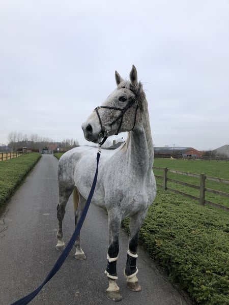 Mon Dieu van ‘t Kattekwaad Na heel veel wikken en wegen heb ik besloten een nieuwe thuis te zoeken voor mijn grote vriendelijke reus. Mon Dieu is een hele lieve maar onzekere ruin en heeft dus nood aan iemand die rustig met hem kan omgaan. Onder het zadel zet hij geen stap verkeerd maar kan wel wat kijkerig zijn. Er werd enkele maanden geleden spat bij hem vastgesteld (beide achterbenen, maar enkel 1 been werd behandeld). Hij heeft hier in het dagelijkse leven geen last van, maar kan uiteraard enkel nog recreatief gereden worden. Hij doet ook heel graag grondwerk en kan hier zeker veel in groeien. De ideale plek voor Dieu is: - bij voorkeur 24/7 buiten (of enkel ‘s nachts op stal) - een stabiele kudde waar hij niet alleen komt te staan - iemand die meer belang hecht aan grondwerk en wandelingen dan zwaar pistewerk
