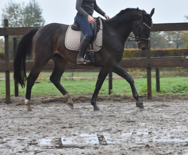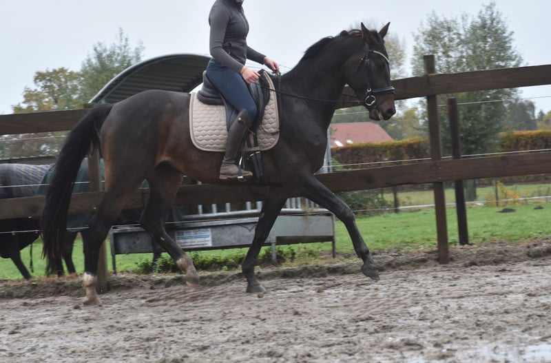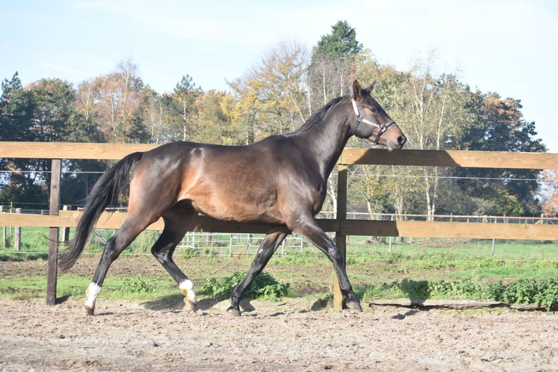 Meet Valesco van de Melane. We had the pleasure of acquiring him directly from the breeder, together with his stablemate Voltaire van de Melane. What a gem! A stunning, black-brown 4.5-year-old gelding approximately 1.68 m tall, with an impressive pedigree: Lavillion x Akribori x Ulft. A perfect combination for both dressage and show jumping. Valesco is truly a sweetheart of a horse. In the stable, he captures everyone's attention with his charming presence and thoroughly enjoys a cuddle. Under saddle, he demonstrates his willingness to work and his calm, sensible nature. He is very pleasant to ride and offers his rider a good feel in the hand. He has been radiographically and clinically examined, with sound legs, back, and neck. With his talent and versatility, Valesco offers many possibilities. He is a horse with a bright future, suitable for both sport (dressage and jumping) and recreational riding. He is well-versed in traffic and trailer loading, both now and in the past. Very social and free of any (stable) vices. Valesco is in excellent health and moves with great cadence, balance, and freedom. Price: €9,750 – including brand saddle and bridle.