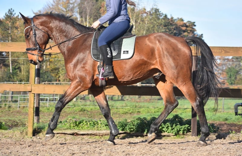 We had the opportunity to acquire him directly from the breeder, together with his stablemate Valesco vd Melane. Meet Voltaire van de Melane, an impressive and elegant 4.5-year-old gelding approximately 1.75 m tall, with an excellent pedigree: Querido VG x Concorde Z x Tresor D 12. Click HERE for his papers. A horse with a bright future, suitable for both sport (dressage + jumping) and recreational riding. Voltaire is beautifully built and possesses a lot of presence and suppleness. He is a friendly, cheerful, and positive horse. Under saddle, he demonstrates his natural balance and cooperative character. He seeks a good connection with the rider and is a pleasure to ride. He is well-behaved in traffic and loading, both here and previously. Very social. Free of any (stable) vices. Voltaire is in excellent health and moves exceptionally well, with a lot of cadence, balance, and freedom of movement. He has been radiographically and clinically approved, with healthy legs, back, and neck. Price: €9,750 including a brand-name saddle and bridle, complete.