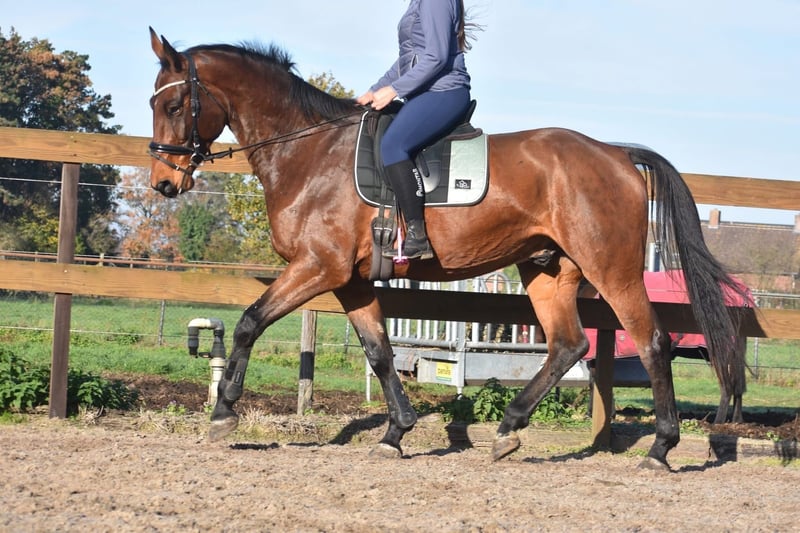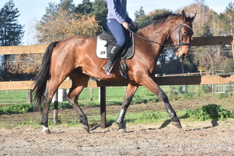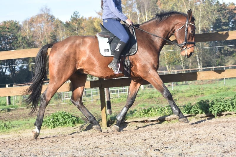 Rechtstreeks van de fokker mochten wij hem overnemen, samen met stalgenootje Valesco vd Melane. Ontmoet Voltaire van de Melane, een imposante en elegante 4,5-jarige ruin van ca. 1.75m, met een uitstekende afstamming: Querido VG x Concorde Z x Tresor D 12. Klik HIER voor zijn papier. Een paard met een mooie toekomst , geschikt voor zowel sport ( dressuur+ springen) als recreatie. Voltaire is prachtig gebouwd en beschikt over veel uitstraling en souplesse. Het is een vriendelijk, vrolijk en positief paard. Onder het zadel laat hij hier zijn natuurlijke balans en meewerkende karakter zien. Hij zoekt fijn de verbinding met de ruiter en is prettig te rijden. Hij is hier en voorheen goed verkeers,- en trailermak. Heel erg sociaal. Vrij van ( stal) gebreken. Voltaire is kerngezond en kan enorm goed bewegen, met veel cadans , balans en ruimte. Hij is röntgenologisch en klinisch goedgekeurd, zowel de benen als rug en hals. € 9750,- incl. merkzadel en hoofdstel compleet.