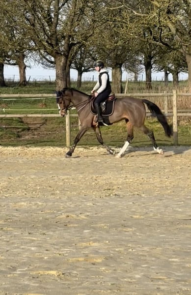 Ushi van’t droogveld – Luigi D’Eclipse x Feliciano – ist ein talentierter und kompakter 5-jähriger Wallach, der erfolgreich an der STX-Zyklus für 5-Jährige mit Charlotte Degeest teilgenommen hat. Er zeigt eine feine Einstellung, Vorsicht und eine schöne Springtechnik. Ein Pferd mit großem Potenzial für die Zukunft! Ushi wurde hier geboren und wurde im Frühjahr vollständig röntgenologisch untersucht, ohne Beanstandungen. Eine erneute Untersuchung ist auf Kosten des Käufers möglich. ⚠️ Nicht für Anfänger geeignet, nur für erfahrene Reiter mit Kenntnissen über junge Pferde, die sein Talent weiter fördern möchten. Ushi geht nur an die passende Person und befindet sich im höheren Preissegment.