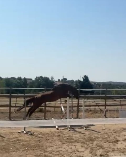 5-jarige ruin, recent onder het zadel. Een zeer aantrekkelijk, heter paard dat zijn ras duidelijk weerspiegelt, met mooie, expressieve bewegingen en een zachte, correcte mond. Hoewel hij is opgeleid voor het springen, toont hij goede en elegante gangen, waardoor hij ook geschikt is voor de dressuur. Buitenrijden in het bos en in het veld doet hij zeer goed en zelfverzekerd. Nog wat groen en heeft verdere opleiding nodig. Geschikt voor een ervaren ruiter, aangezien het paard een moeilijk karakter heeft en een zelfverzekerde aanpak vereist. Zijn vader loopt momenteel op 1.60 m-niveau met goede resultaten en komt uit zeer sterke bloedlijnen. Een kwaliteitsvol en veelzijdig toekomstpaard met de juiste ruiter. 5-year-old horse, recently entered. A very attractive, hot-blooded horse that clearly reflects his breed, with nice, expressive movement and a soft, correct mouth. Although trained for show jumping, he shows good and elegant movements, allowing him to perform well in dressage. Very good and confident when hacking out in the countryside. Still a bit green and in need of further education. Suitable for an experienced rider, as the horse has a difficult character and requires confident handling. His sire is currently competing at 1.60m level with good results and comes from very strong bloodlines. A quality and versatile prospect with the right rider. Cheval de 5 ans, récemment débourré. Un cheval attirant, sanguin, qui reflète clairement sa race, avec des allures belles et expressives et une bouche douce et correcte. Bien qu’entraîné pour le saut d’obstacles, il montre de bonnes allures élégantes, ce qui lui permet également de bien s’exprimer en dressage. Très sûr et confiant lors des sorties en extérieur. Encore un peu vert et nécessitant une formation supplémentaire. Convient à un cavalier expérimenté, car le cheval a un caractère difficile et demande une conduite assurée. Son père concourt actuellement au niveau 1.60 m avec de bons résultats et provient de lignées très solides. Un prospect de qualité et polyvalent avec le bon cavalier. 5-jähriges Pferd, kürzlich angeritten. Ein sehr attraktives, heißblütiges Pferd, das seine Rasse deutlich widerspiegelt, mit schönen, ausdrucksstarken Bewegungen und einem weichen, korrekten Maul. Obwohl es für den Springsport ausgebildet wurde, zeigt es gute und elegante Grundgangarten, wodurch es sich auch gut für die Dressur eignet. Sehr brav und selbstsicher beim Ausreiten im Gelände. Noch etwas grün und benötigt weitere Ausbildung. Geeignet für einen erfahrenen Reiter, da das Pferd einen schwierigen Charakter hat und eine sichere, konsequente Hand erfordert. Sein Vater startet derzeit erfolgreich auf 1.60-m-Niveau und stammt aus sehr starken Blutlinien. Ein qualitativ hochwertiges und vielseitiges Nachwuchspferd mit dem richtigen Reiter.