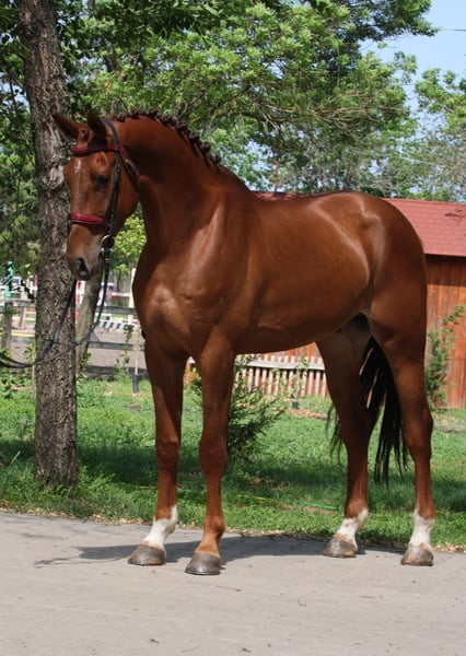 Cavallo di 5 anni stallone castrone 172 cm padre: Gancio van t’ Smisveld Z madre: Diamant de Semilly Questo giovane stallone molto attraente rappresenta la combinazione ideale di qualità, temperamento eccellente e athleticism. Con il suo tipo moderno e un aspetto espressivo, si distingue immediatamente come un cavallo con grande potenziale. È già alto 1,72 m e pronto a fare il prossimo passo con sicurezza. Coraggioso, cauto e molto maneggevole, unisce il suo talento naturale per il salto ostacoli a un atteggiamento disposto, rendendo particolarmente piacevole il suo ulteriore addestramento. La sua rapida capacità di apprendimento e il carattere equilibrato lo rendono un partner ideale per giovani cavalieri, dilettanti ambiziosi o anche programmi professionali. Grazie al suo pedigree, al talento e a un ottimo livello di base, questo cavallo offre ottime opportunità a chi desidera sviluppare sistematicamente un giovane di alta qualità fino a un livello superiore. Il cavallo è stato recentemente sottoposto a radiografie. - Spediamo in tutto il mondo. - Sono possibili anche scambi.