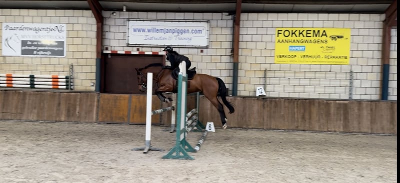 Prachtige 6-jarige ruin Mooie ruin van Windbreaker (v. Heartbreaker) met een stokmaat van ongeveer 1.64 m. Paard met een fijne sprong! Voorzichtig en met een goede techniek. Nog wat groen, maar prettig te rijden. Nog geen wedstrijdervaring. Wordt dit jaar 6 jaar. Wordt momenteel gereden door een amateur amazone. Vrij van stalgebreken en KL en RX ggk. ✅ ☎️ 0031-610197456
