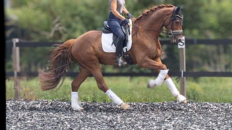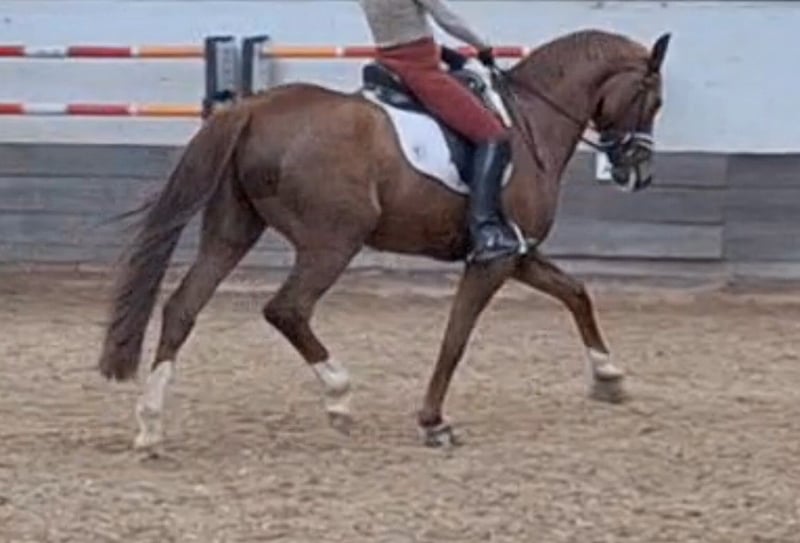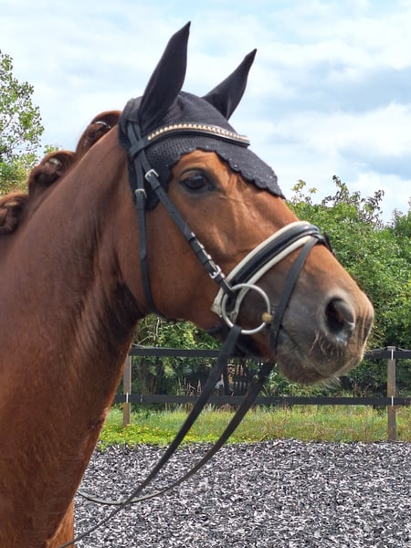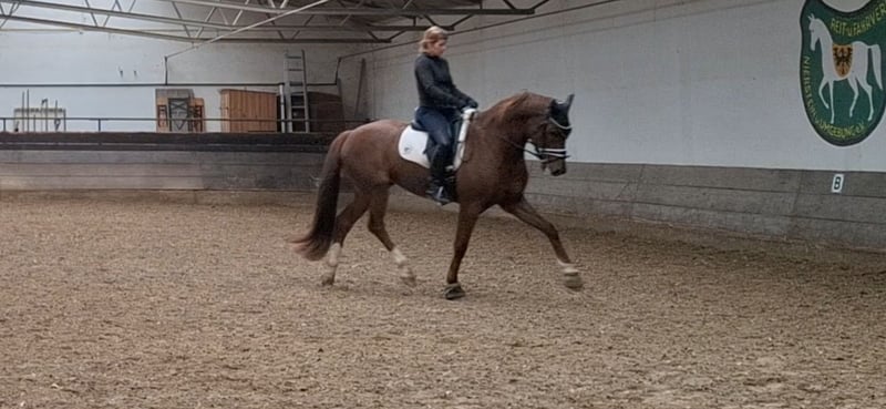 Expressive, beautiful dark chestnut mare ☆☆☆ Flumie ☆☆☆ Three very good basic gaits Winner in Riding Horse and Dressage Horse Class A Ridable with go Generally well-behaved and sensitive Healthy, with good X-ray results available Incredibly sweet and human-oriented horse Flumie enjoys groundwork and liberty work very much Very friendly with other horses, tends to be lower in the herd hierarchy Not for sale to resellers I look forward to friendly inquiries Video available upon request Test ride €35