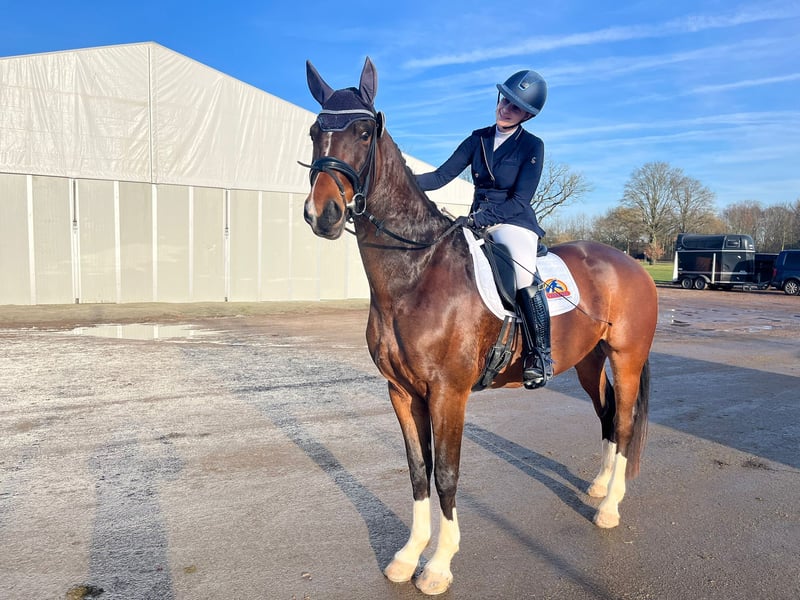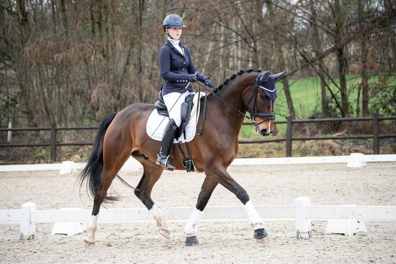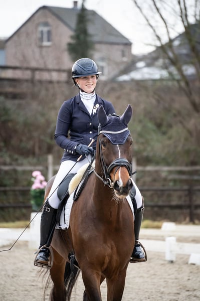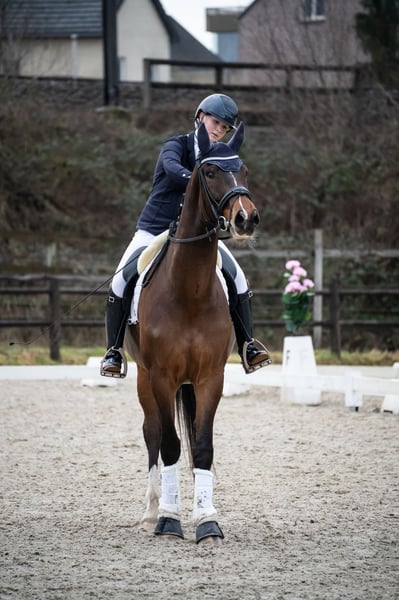 Ustin van het Bloemenhof ist ein hübscher 6-jähriger Wallach mit allem, was man für eine vielversprechende Zukunft im Sport sowie als zuverlässiges Freizeitpferd benötigt. Er zeigt sich täglich als ein ehrliches, kooperatives Pferd mit einem angenehmen Charakter und großer Lernbereitschaft. Ustin verfügt über drei gute Grundgangarten: einen weiten Schritt, einen getragenen Trab und einen komfortablen Galopp. Er ist fein an den Hilfen und denkt mit seinem Reiter mit. Dank seines Gleichgewichts und seiner Arbeitswilligkeit ist er sowohl für Anfänger geeignet, die Selbstvertrauen aufbauen möchten, als auch für fortgeschrittene Reiter, die sich weiterentwickeln wollen. Er hat bereits Wettkampferfahrung gesammelt und zeigt sich vorbildlich auf ungekanntem Gelände. Bei jedem Turnier erreichte er etwa 70 %. Er ist brav in der Stallhaltung, beim Schmied und während des Transports. Ein Pferd, das gerne für dich arbeitet und mit dem du gerne unterwegs bist. Kurz gesagt, Ustin van het Bloemenhof ist ein vielversprechendes Allround-Pferd mit einem goldenen Charakter – bereit, gemeinsam mit seinem neuen Reiter weiter zu glänzen. Außerdem wurde dieses Pferd kürzlich vollständig klinisch und röntgenologisch abgenommen und genehmigt.