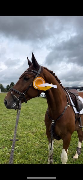 For sale is the 8-year-old gelding Spirit, sired by I’m Special de Muze x Toulon – an impressive pedigree that leaves no wishes unfulfilled. Spirit is a truly exceptional horse. He is unique in his expression, character, and talent. He presents himself with a striking stallion type, exuding presence and an elegant appearance. Particularly noteworthy is his incredibly beautiful, modern jumping technique, characterized by great scope and power. In 2025, during his first competition season, Spirit already achieved placements up to 1.25 meters, won the Young Jumpers class with top marks, and has been presented up to 1.35 meters. He consistently demonstrates impressive scope, remarkable bravery, and a strong drive to succeed. He is very social with other horses and behaves well in daily handling—quiet, friendly, and shoe- and loading-safe. However, Spirit is not an amateur horse and is not sold to amateurs. Due to his ambitious and highly trainable nature, he requires an experienced rider who can set clear boundaries and support his development. A motivated bockspring (bucking) is not uncommon with him—Spirit is a horse with personality and plenty of energy. X-ray images of his legs from 2022 are available. He has a slightly steeper hoof angle on the front left compared to the front right, but this has so far caused no restrictions or issues. He also has a bone spavin at the back, which currently has no impact. Location: 47918 For serious inquiries, please feel free to contact me at 015732463127!