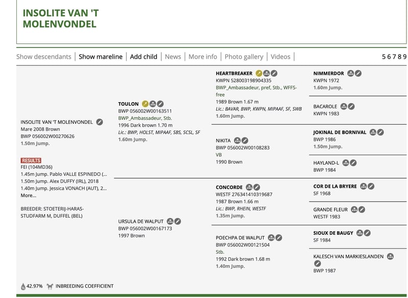 Outstanding foal expected May 2026 by the exceptional Comme Il Faut out of the proven BWP mare Insolite van’t Molenvondel (Toulon x Concorde). This foal unites two of the most influential modern jumping dynasties. On the sire side, Comme Il Faut – by Cornet Obolensky and out of the legendary Ratina Z (Ramiro Z) – represents elite 1.60m Grand Prix genetics, combining explosive power, reflexes and top-level mentality. On the dam side, Insolite van’t Molenvondel (Toulon x Concorde) brings proven Belgian performance blood, with strong technique, rideability and reliability in sport up to 1.50m level. This cross blends: • Elasticity and sharp reflexes (Cornet Obolensky line) • Scope and power (Ramiro Z / Ratina Z family) • Rideability and carefulness (Toulon) • Solid performance dam line (Concorde) A modern sport prospect with the potential for top international showjumping. Foal available at birth – May 2026.