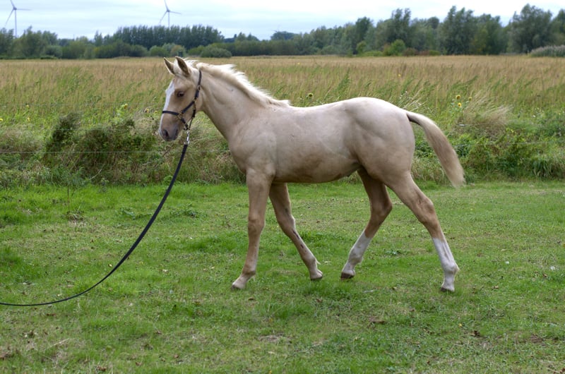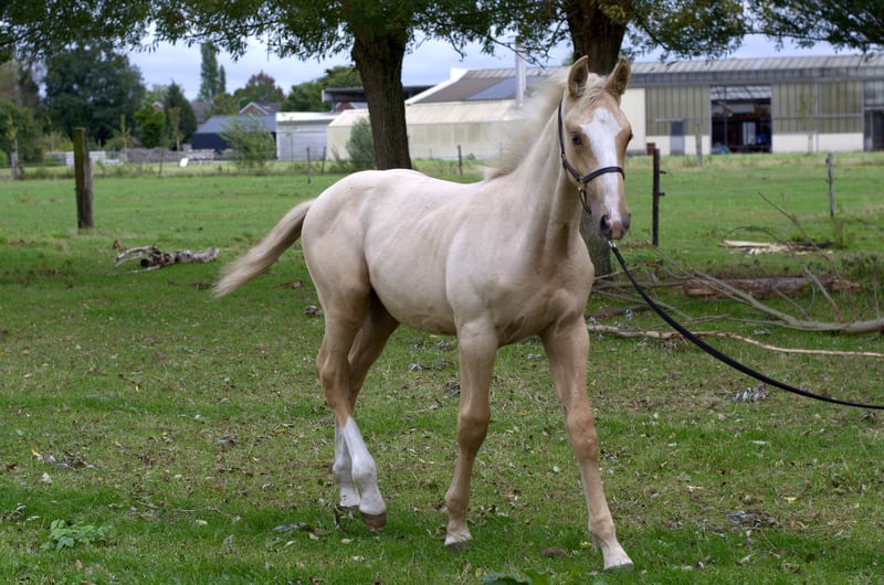 Stallion Foal – Born 26/05/2025 Ciro di Bosco is a large-sized palomino stallion foal, ideal for someone who wants to enter the sport later with a special color. Ciro is registered with BWP. In his pedigree, both dressage and jumping at the highest level can be found. Pedigree: * Sire: Diamante (Treliver Decanter x Sovereign Prince) – competed up to 1.40m. Treliver Decanter competed in Grand Prix dressage. Kattenheye also used Diamante this year, resulting in a beautiful filly that was sold well at the Elite Foal Auction. * Dam: Briseis (Griseldi x Poor Boy) – my own riding horse. Not competed in shows, but always trained at the 1.20m level. The mother of Briseis competed successfully up to 1.45m. Griseldi competed at 1.55m. Poor Boy competed at 1.60m. For more information, videos, please contact: +32 483 26 46 70
