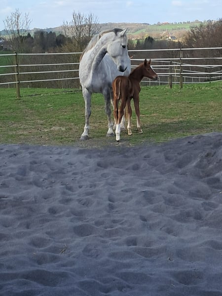 Große Stute, geboren am 14. Februar 2012, 173 cm groß. Ausgebildet 2019, jedoch ausschließlich für die Zucht genutzt. Sehr angenehmes Wesen, äußerst fürsorglich. Ihre Nachkommen: - Palinko du Bois Halleux, M50 (Frankreich) - Qhyra du Bois Halleux, M35 (Deutschland) - Ulhick du Bois Halleux, M10 (Portugal) - Cripsi du Bois Halleux, die jüngste im Jahr 2025 geboren (verkauft nach Deutschland) Malika du Bois Halleux, Tochter von Ironie du Bois Halleux (Elite-Merrie BWP), die unter der Reiterin und Besitzerin Isabelle Gerfer in den Disziplinen M50-55 erfolgreich war. Ironie: - Erste Platzierung in Galhen U25 M50 - Erste Platzierung in Mannheim U25 M50 - 7. Platz in Aachen U25 M50 2018-2019 + zahlreiche weitere gute Ergebnisse in M40/45 Ich suche ein neues Zuhause für Malika. Sie hat noch einige Jahre für die Zucht vor sich. Händler bitten wir, von einer Kontaktaufnahme abzusehen. Grund: Berufsaufgabe