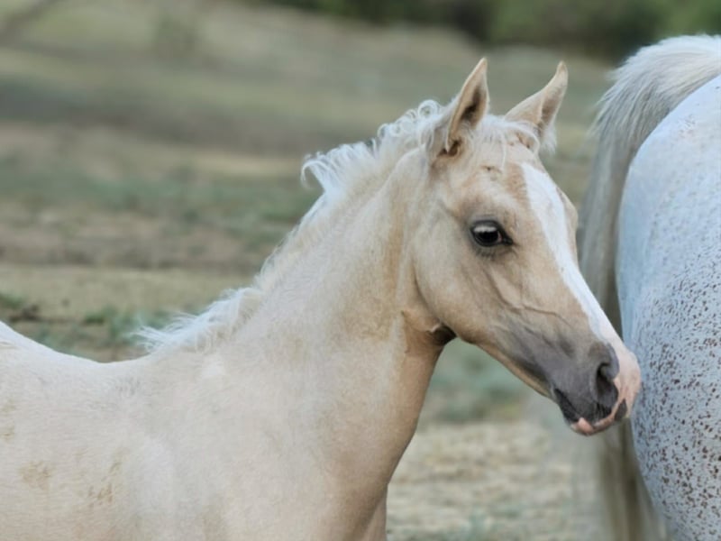 Ein liebes, freundliches Stute. Abstammung: von einer arabischen Vollblutstute und einem cremello Sportponyhengst.