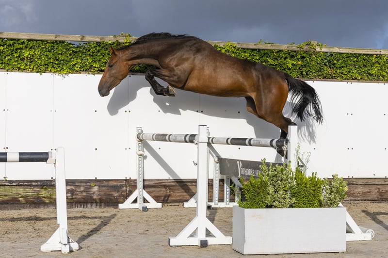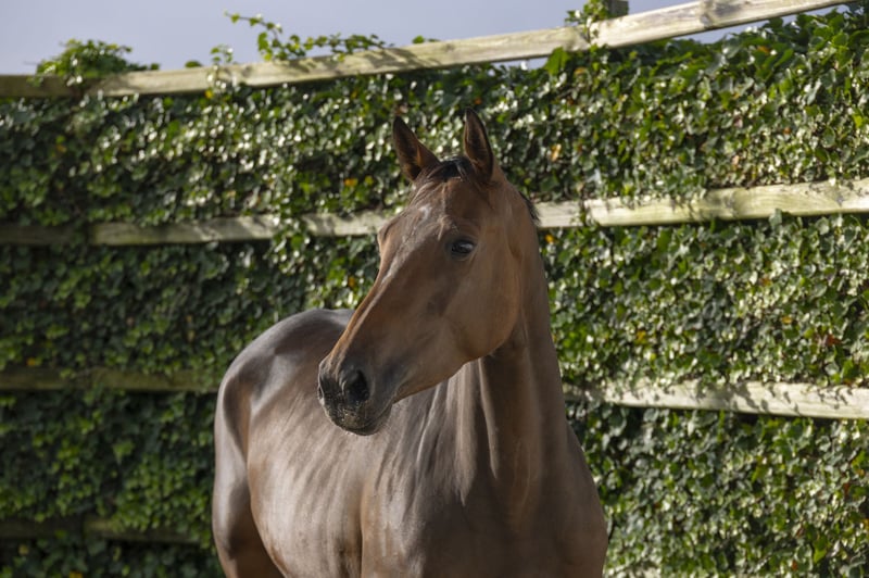 The four-year-old Verena Van Het Schaeck is an interesting mare for sport and breeding. She already produced a foal this year, which was weaned two weeks before the video day. Verena is large-framed and ready to start her training, though still a little green in handling. Sire Rockybo Van Het Schaeck is an eight-year-old son of Diamant de Semilly out of the 1.60m Grand Prix mare Exquis Walnut de Muze. This line also appears on the dam’s side. Dam Quantro Van Het Schaeck (Plot Blue) is the full sister of the 1.60m GP stallion Million Dollar. They are bred out of Gin Tonic de Muze (Vigo d’Arsouilles), daughter of the 1.60m GP mare Daytona de Muze (Cento) and half-sister to six (inter)national showjumping horses at 1.30–1.50m level.