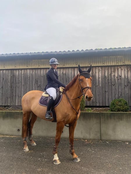 Eine talentierte und äußerst zuverlässige 5-jährige Stute mit angenehmer Einstellung und großem Potenzial für den Sport. Im Umgang ist sie außergewöhnlich brav; sie ist leicht zu handhaben, läuft ohne Probleme auf den Transport und verhält sich stets vorbildlich in der Nähe anderer Pferde. Sowohl alleine als auch in der Gruppe unternimmt sie gerne Spaziergänge und bleibt überall ruhig, ohne sich von unerwarteten Situationen aus der Ruhe bringen zu lassen. Unter dem Sattel kennt sie die Grunddressur und arbeitet willig mit, auch wenn sie in diesem Bereich noch etwas grün ist. Sie hat bereits Wettkampferfahrung bei 90 cm und springt in der Ausbildung flüssig 100 bis 110 cm, wobei sie stets viel Einsatz zeigt und einen schönen Sprung zeigt. Für jemanden, der sie weiterhin fördert, ist noch weiteres Entwicklungspotenzial vorhanden. Aufgrund ihres Alters und Ausbildungsstands sucht sie einen Reiter mit etwas Erfahrung, daher ist sie nicht für absolute Anfänger geeignet. Für weitere Informationen, Videos oder eine Besichtigung stehe ich jederzeit gern zur Verfügung.