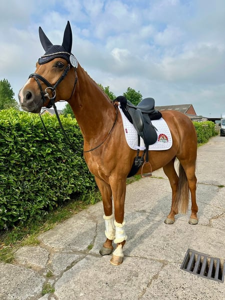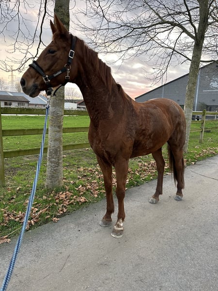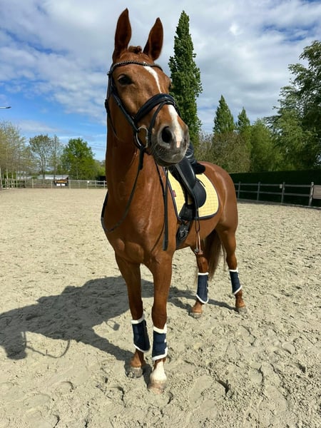 Triple is een 7 jarige merrie met afstamming Escamillo x For Romance x Weltmeyer. Ze meet 1m65. Ze is een enorm eerlijk en betrouwbaar paard waar een ervaren, ambitieuze ruiter zo opstapt en wegrijdt. Bij ons heeft ze nooit gebokt of gesteigerd. 🏅Heeft vorige jaar een mooi wedstrijdseizoen achter de rug gehad met enkele prachtige resultaten van scores hoger dan 70%. 🌳Verder geniet ze enorm van wandelingen in het bos en aan het strand. Hierbij is ze ook niet rillig of kijkerig. Wij nemen ze vaak mee als kopman maar ze kan ook perfect vanachter in de groep aansluiten, wat je nodig hebt op die moment. RX foto’s zijn reeds aanwezig zonder bemerkingen (nek, rug en benen) maar herkeuren mag, kosten koper. 📥 Indien je meer informatie wenst over Triple of een afspraak wilt maken om te komen testen, aarzel dan zeker niet om mij te contacteren.