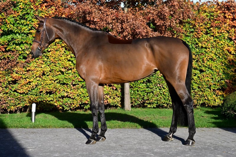 This seven-year-old bay mare is a direct daughter of Toulon, a stallion renowned worldwide for producing horses with scope, mentality, and outstanding athletic ability. On the dam’s side, her pedigree features an impressive line-up of proven sires: Clarimo ASK, Chin Chin, Corrado, and Lord. It is therefore no surprise that this family has already produced multiple horses successful at 1.50m level and beyond. Chakira reflects these strong bloodlines beautifully. Under saddle she is exceptionally easy to ride: light in the hand, responsive to the aids, and effortlessly performing correct flying changes. Thanks to her natural balance, smooth canter, and cooperative attitude, she gives riders an immediate feeling of trust — even those with less experience. In the ring, she shows her full potential. She thinks along with her rider, stays naturally forward without becoming strong, and jumps with a reliable, consistent technique. Her carefulness and awareness make every round smooth, controlled, and enjoyable. With her sensible nature, talent, and user-friendly rideability, Chakira is an excellent match for a strong amateur or young rider looking to progress with confidence. She brings enjoyment in daily training, security in the ring, and promising potential for the future. In the case of direct export to non-EU countries, VAT is no longer applicable (21% becomes 0%). If the export is delayed (but happens as soon as possible), the VAT will be refunded after we have received the official export document (which is drawn up by customs).