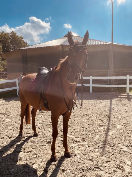 Na sprzedaż wystawiona jest ta urodzona w 2018 roku belgijska klacz typu warmblood o znakomitym rodowodzie. Klasa 1, zarejestrowana jako klacz hodowlana BWP, z pełną dokumentacją. Senorita vd Oudeveldhoeve łączy geny Nixon van 't Meulenhof (brat półbrat do Emerald) oraz Nabab de Reve – rodowód, który niemal nie pozostawia życzeń co do hodowli. Senorita to bardzo inteligentna i chętna do pracy klacz. Jest jednak wyjątkowo wrażliwa i w niektórych sytuacjach może być nieco płochliwa, dlatego potrzebuje wyraźnego, pewnego prowadzenia. Ponieważ nie jesteśmy w stanie zapewnić jej takiego otoczenia, szukamy dla niej doświadczonego miejsca, gdzie będzie mogła rozwinąć swój potencjał. Ze względu na jej pochodzenie, stanowi również bardzo interesującą opcję dla hodowców poszukujących nowoczesnej, sprawdzonej linii sportowej. Dane techniczne: • Wiek: 8 lat (ur. 14.05.2018) • Wzrost: 164 cm • Rodowód: Nixon van 't Meulenhof x Prince van de Wolfsakker • Poziom wyszkolenia: podstawowy / w wieku odpowiednio niski. Niestety, nie mieliśmy okazji zapewnić jej pełnego rozwoju, więc jej poziom wyszkolenia jest raczej na poziomie 4-letniej klaczy. • Charakter: inteligentna, chętna do nauki, bardzo wrażliwa. Oddajemy ją tylko w ręce doświadczonych jeźdźców. Nie jest to koń dla początkujących. Priorytetem jest miejsce, nie cena, przy odpowiednim domu.