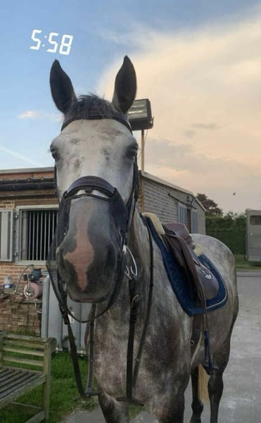 **Te koop: Belgische Warmbloed Merrie – Springpaard (Chaiton F Z) ** Deze prachtige merrie, geboren in 2018, is een mooie verschijning met een stokmaat van ongeveer 168 cm. heel braaf oo transport en in de omgang , scheren zonder verdoving, braaf bij smid en dierenarts. moeilijker type om te rijden. training 115 training jumping 110 wedstrijd 1m. met de juiste ruiter kan ze zeker hogerop. broer liep 135 al veulen gegeven Voor meer informatie of een kennismaking, neem gerust contact met ons op.