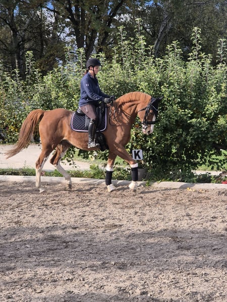 Spring talent mare with dual pedigree. Rosi has become a mother for the first time this season. She is currently being retrained. She has never been lame or ill; a veterinary examination (AKU) can be arranged at her owner's expense. She is a beautifully conformed, typical mare with stallion-like features, currently shod with two front shoes. Not suitable for beginners or novice riders.