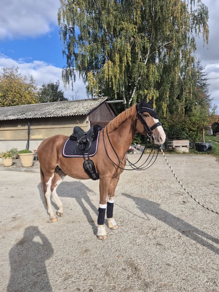 Springtalentierte Stute mit Doppelveranlagung. Rosi ist diese Saison zum ersten Mal Mama geworden. Aktuell wird sie wieder antrainiert. Sie war nie lahm oder krank, AKU kann auf eigene Kosten gerne erstellt werden. Sie ist eine Wiederschöne typische Stute im hengsttyp, 2fach beschlagen Kein Anfänger, Einsteiger Pferd