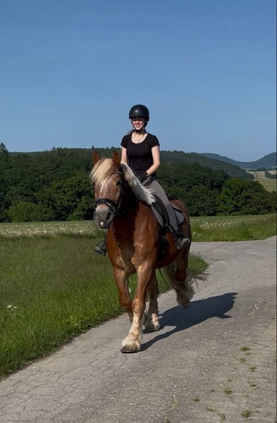 Schweren Herzens müssen wir uns von unserem 7-jährigen Kaltblut Wallach trennen. Er sollte uns auf unserem kleinen Ferienhof eigentlich in den Reitstunden für größere Jugendliche oder Erwachsene unterstützen, da er aber recht feinfühlig ist bei der Hilfengebung, ist er für unerfahrene Reiter aufgrund seiner Größe leider nicht einfach genug zu reiten. Er ist ein ganz Lieber, ist angenehm im Umgang und sehr verschmust. Leider geht er bei uns im täglichen Trott einfach ein wenig unter. Reiten in der Halle und auf dem Platz, Ausritte ins Gelände, Longieren, Geschicklichkeitsspiele, geführte Schritt-Ausritte mit Kindern, das alles macht er super mit. Er nimmt auch kleine Hindernisse mit großer Begeisterung. Unkompliziert bei Schmied und Tierarzt. Momentan steht er bei uns in einer großen Paddockbox mit täglichem Auslauf oder Weidegang. Läuft zur Zeit barhuf. Wir wünschen uns für ihn einen schönen Platz, wo er die Aufmerksamkeit bekommt, die er verdient. Allerdings wie schon beschrieben, aufgrund seiner Größe und Stärke (noch) kein wirkliches Anfängerpferd. Auf Wunsch kann gegen Aufpreis der angepasste Sattel und die Trense übernommen werden. Kennenlernen und Probereiten ist nach Absprache natürlich möglich.